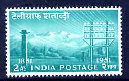 India 1953 Centenary of Indian Telegraphs 2a blue-green unmounted mint SG 346