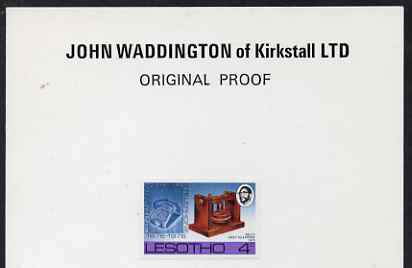 Lesotho 1976 Telephone Centenary 4c imperf proof as issued stamp on John Waddington card endorsed 'Original Proof' fine and rare as SG 318