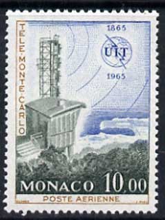 Monaco 1965 Monte Carlo television transmitter 10f unmounted mint, from ITU Centenary set, SG 830