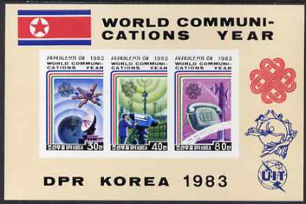 North Korea 1983 World Communications Year imperf m/sheet (3 values) from a limited printing, unmounted mint SG MS N2350a