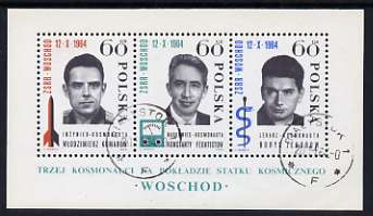 Poland 1964 Russian Three-Manned Space Flight m/sheet depicting crew fine used,,SG MS 1527a