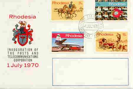 Rhodesia 1970 Inauguration of Posts & Telecommunications Corp set of 4 on illustrated cover with first day cancel, SG 453-56