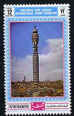 Yemen - Royalist 1970 'Philympia 70' Stamp Exhibition 12B Telecom Tower (Post Office Tower) from perf set of 10, Mi 1035A* unmounted mint