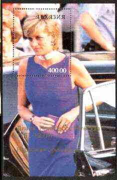 Abkhazia 1999 Princess Diana perf souvenir sheet #2 (Diana leaving car) unmounted mint