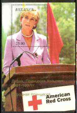 Abkhazia 1999 Princess Diana perf souvenir sheet #3 (Diana giving speech for Red Cross) unmounted mint