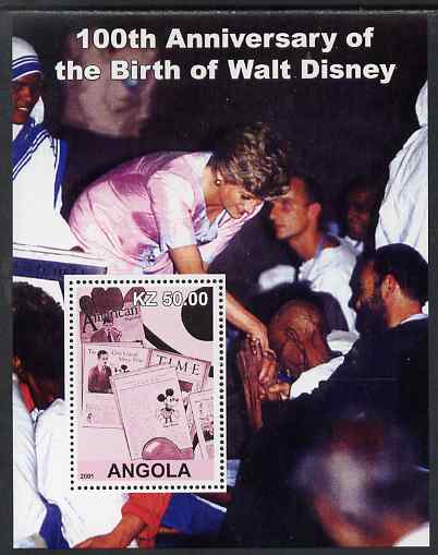 Angola 2001 Birth Centenary of Walt Disney #08 perf s/sheet - Magazine Covers & Diana, unmounted mint. Note this item is privately produced and is offered purely on its thematic appeal