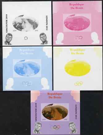 Benin 2009 Princess Diana, Kennedy & Olympics #01 individual deluxe sheet, the set of 5 imperf progressive proofs comprising the 4 individual colours plus all 4-colour composite, unmounted mint