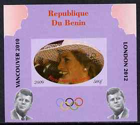 Benin 2009 Princess Diana, Kennedy & Olympics #01 individual imperf deluxe sheet, unmounted mint. Note this item is privately produced and is offered purely on its thematic appeal