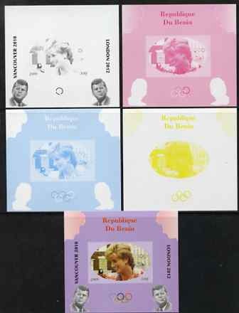 Benin 2009 Princess Diana, Kennedy & Olympics #02 individual deluxe sheet, the set of 5 imperf progressive proofs comprising the 4 individual colours plus all 4-colour composite, unmounted mint