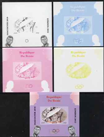Benin 2009 Princess Diana, Kennedy & Olympics #07 individual deluxe sheet, the set of 5 imperf progressive proofs comprising the 4 individual colours plus all 4-colour composite, unmounted mint