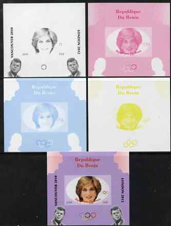 Benin 2009 Princess Diana, Kennedy & Olympics #08 individual deluxe sheet, the set of 5 imperf progressive proofs comprising the 4 individual colours plus all 4-colour composite, unmounted mint