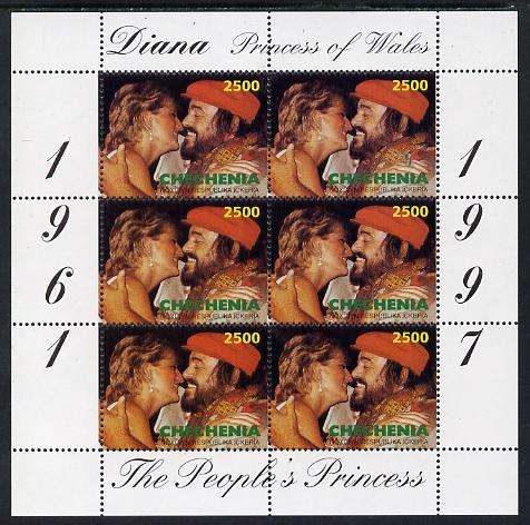 Chechenia 1997 Diana, Princess of Wales in sheetlet containing 6 x 2500 value (Princess with Luciano Pavarotti) unmounted mint
