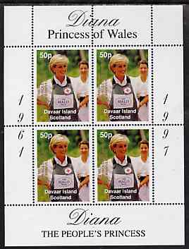 Davaar Island 1998 Diana, The People's Princess perf sheetlet containing 4 x 50p values (Wearing Red Cross Bullet-proof Vest) opt'd In Memorium, 1st Anniversary unmounted mint