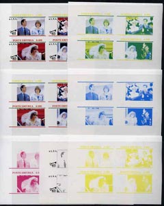 Eritrea 1982 Princess Di's 21st Birthday imperf sheetlet containing set of 4 values, the set of 7 progressive colour proofs comprising the 4 individual colours and various colour combinations incl completed design