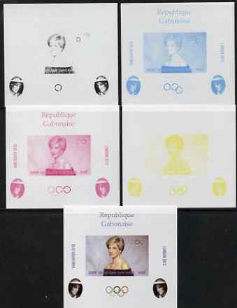 Gabon 2009 Olympic Games - Princess Diana #02 individual deluxe sheet - the set of 5 imperf progressive proofs comprising the 4 individual colours plus all 4-colour composite, unmounted mint