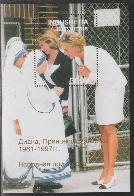 Ingushetia Republic 1997 Princess Diana with Mother Teresa perf souvenir sheet unmounted mint.. Note this item is privately produced and is offered purely on its thematic appeal
