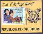 Ivory Coast 1982 Birth of Prince William opt on Royal Wedding perf m/sheet unmounted mint, Mi BL 23A