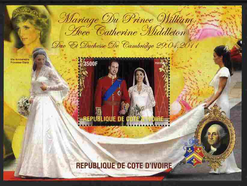 Ivory Coast 2011 Royal Wedding #2 - William & Kate perf m/sheet unmounted mint. Note this item is privately produced and is offered purely on its thematic appeal