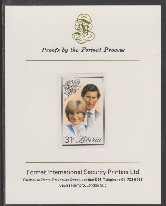 Liberia 1981 Royal Wedding 31c imperf proof mounted on Format International proof card, as SG 1490