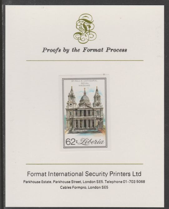 Liberia 1981 Royal Wedding 62c imperf proof mounted on Format International proof card, as SG 1492