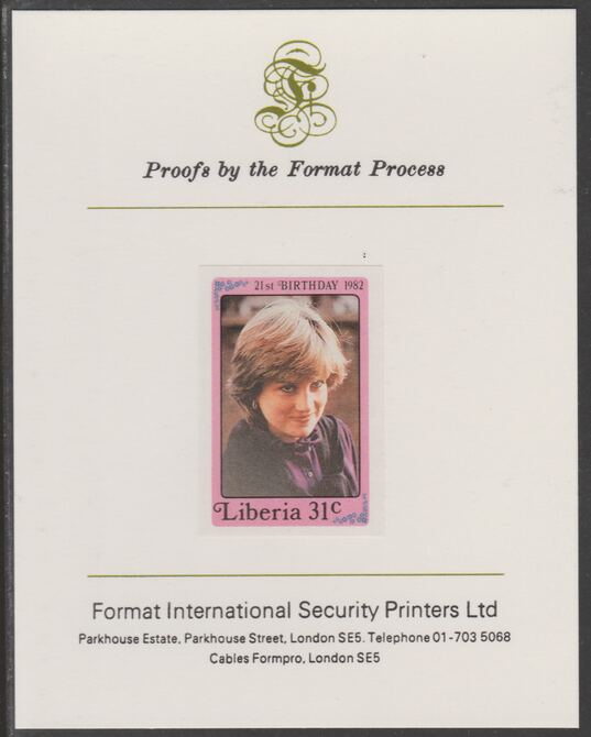 Liberia 1982 Princess Di's 21st Birthday 31c imperf proof mounted on Format International proof card, as SG 1529