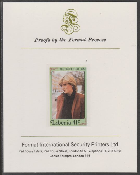 Liberia 1982 Princess Di's 21st Birthday 41c imperf proof mounted on Format International proof card, as SG 1530