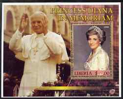 Liberia 2006 Princess Diana In Memoriam perf m/sheet (with Pope John Paul in background) very fine cto used