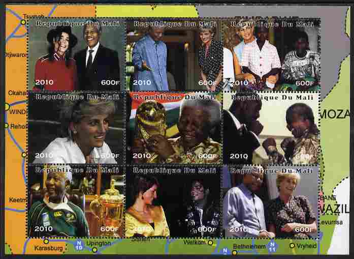 Mali 2010 Princess Diana & Nelson Mandela perf sheetlet containing 9 values unmounted mint. Note this item is privately produced and is offered purely on its thematic appeal