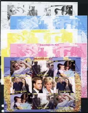 Mali 2010 Princess Diana & Prince William, sheetlet containg 4 values x 2 plus,the set of 5 imperf progressive proofs comprising the 4 individual colours plus all 4-colour composite, unmounted mint