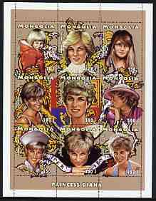 Mongolia 1997 Princess Diana #1 perf sheetlet containing 9 values unmounted mint