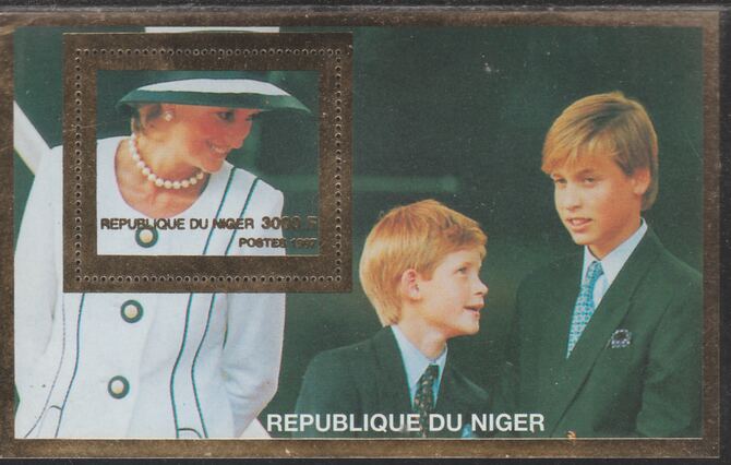 Niger Republic 1997 Princess Diana with William & Harry (Gold frame) perf souvenir sheet unmounted mint.. Note this item is privately produced and is offered purely on its thematic appeal