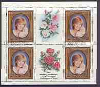 North Korea 1982 Royal Wedding First Anniversary sheetlet containing 4 Diana stamps (with Prince william) plus 2 Flower labels fine cto used, SG N2228