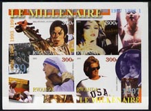 Rwanda 2001 Millennium 1990's imperf sheetlet containing 4 values (Michael Jackson, Madonna,Princess Di & Mother Teresa) unmounted mint