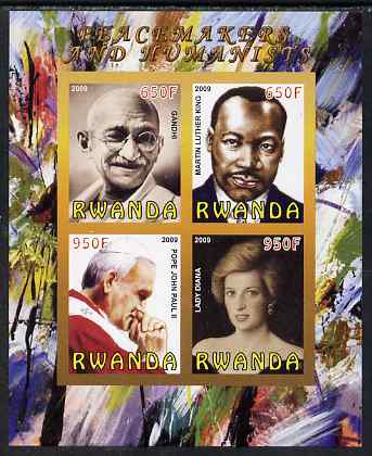 Rwanda 2009 Peacemakers & Humanists #1 imperf sheetlet containing 4 values (Gandhi, Martin Luther King, Pope John Paul & Diana) unmounted mint