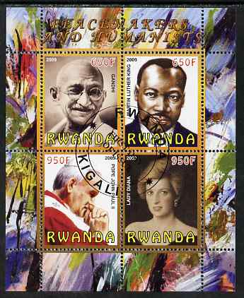 Rwanda 2009 Peacemakers & Humanists #1 perf sheetlet containing 4 values (Gandhi, Martin Luther King, Pope John Paul & Diana) fine cto used