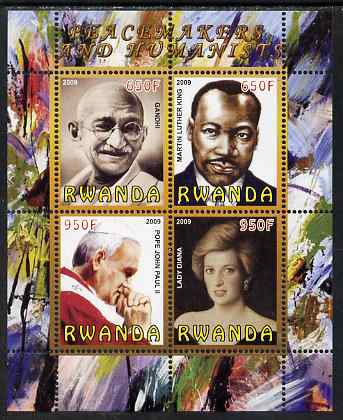 Rwanda 2009 Peacemakers & Humanists #1 perf sheetlet containing 4 values (Gandhi, Martin Luther King, Pope John Paul & Diana) unmounted mint