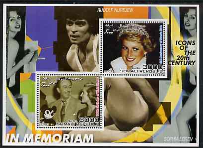Somalia 2001 In Memoriam - Princess Diana & Walt Disney #12 perf sheetlet containing 2 values with Rudolf Nurejev & Sophia Loren in background unmounted mint