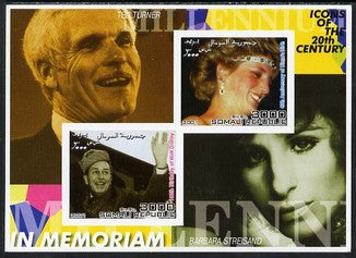 Somalia 2001 In Memoriam - Princess Diana & Walt Disney #16 imperf sheetlet containing 2 values with Ted Turner & Barbara Streisand in background unmounted mint. Note this item is privately produced and is offered purely on its thematic appeal