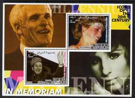Somalia 2001 In Memoriam - Princess Diana & Walt Disney #16 perf sheetlet containing 2 values with Ted Turner & Barbara Streisand in background unmounted mint