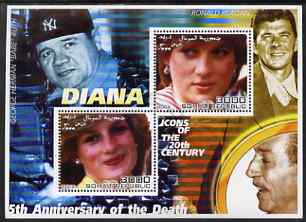 Somalia 2002 Princess Diana 5th Anniversary of Death #04 perf sheetlet containing 2 values with Babe Ruth, Ronald Reagan & Walt Disney in background fine cto used