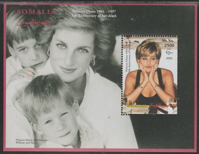 Somalia 2002 Princess Diana 5th Anniversary of Death perf souvenir sheet #1 unmounted mint.. Note this item is privately produced and is offered purely on its thematic appeal