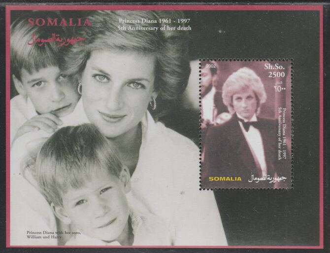 Somalia 2002 Princess Diana 5th Anniversary of Death perf souvenir sheet #4 unmounted mint.. Note this item is privately produced and is offered purely on its thematic appeal