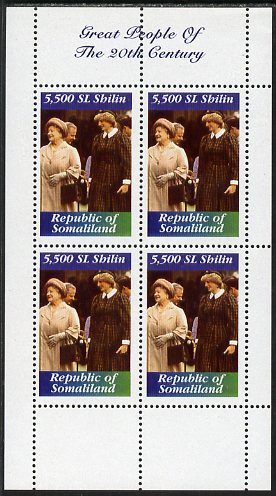 Somaliland 1999 Great People of the 20th Century - Queen Mother & Princess Diana perf sheetlet containing 4 values unmounted mint. Note this item is privately produced and is offered purely on its thematic appeal