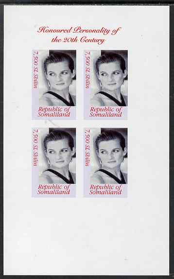 Somaliland 2000 Honoured Personality of the 20th Century - Princess Diana imperf sheetlet containing 4 values, unmounted mint. Note this item is privately produced and is offered purely on its thematic appeal