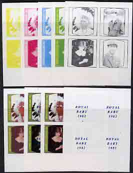 Staffa 1982 Royal Baby opt on 1981 Royal Wedding imperf sheetlet containing set of 4, the,set of 9 progressive proofs comprising the 5 individual colours plus two 2-colour, 3, 4,and all 5-colour composites (36 proofs) unmounted mint