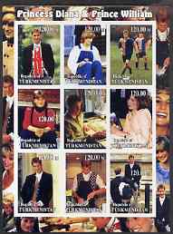 Turkmenistan 2001 Princess Di & Prince william imperf sheetlet containing set of 9 values, unmounted mint