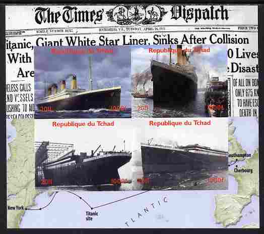 Chad 2011 The Titanic - 100th Anniversary imperf sheetlet containing 4 values unmounted mint. Note this item is privately produced and is offered purely on its thematic appeal.