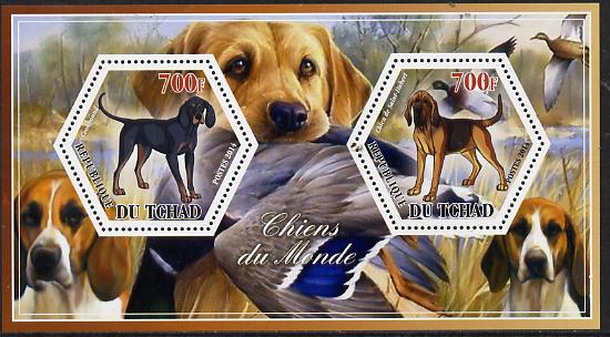 Chad 2014 Dogs #1 perf sheetlet containing two hexagonal-shaped values unmounted mint