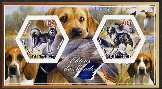 Chad 2014 Dogs #3 imperf sheetlet containing two hexagonal-shaped values unmounted mint
