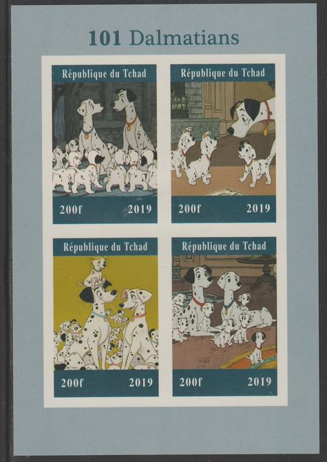 Chad 2019 101 Dalmations imperf sheet containing 4 values unmounted mint.